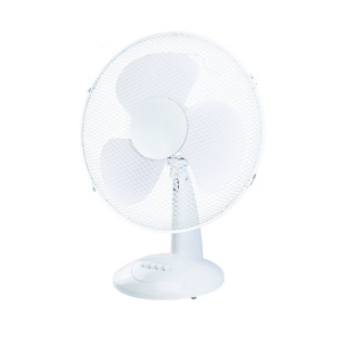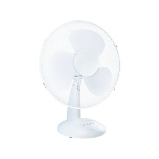 Ανεμιστήρας επιτραπέζιος με 3 λευκά πτερύγια. 3 ταχύτητες Στροφές / λεπτό: 1050/1150/1250 Στάθμη θορύβου: 58db Ρύθμιση γωνίας κλίσης αέρα 30° Περιστροφή αριστερά & δεξιά 80° 1,5μ καλώδιο