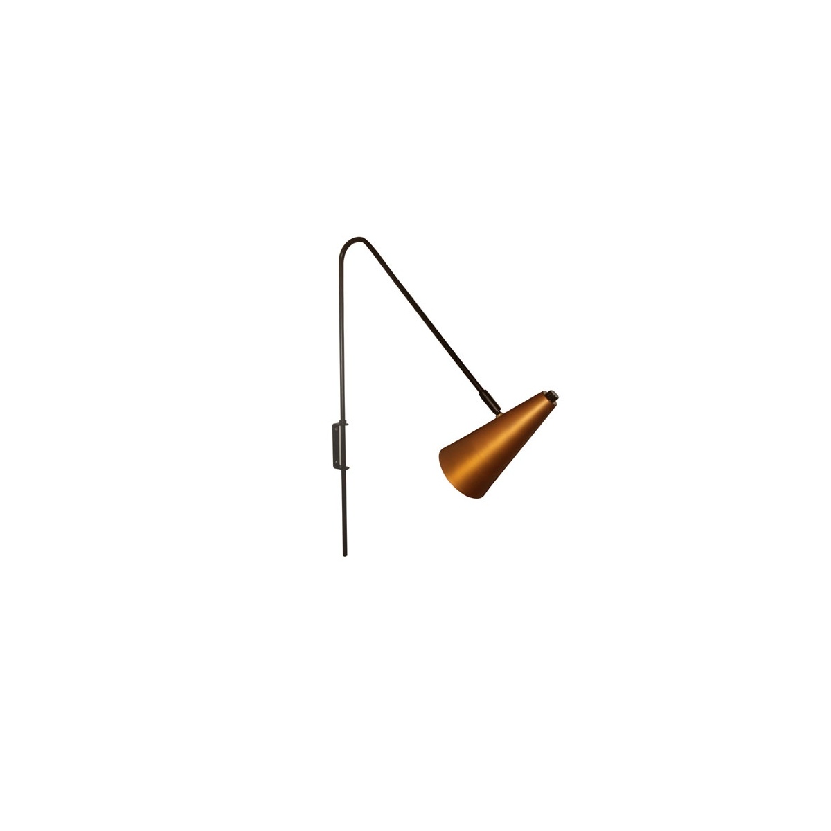 Μεταλλικό μονόφωτο επιτοίχιο φωτιστικό σε μαύρο χρώμα και υφασμάτινο αμπαζούρ σε ασπρόμαυρο χρώμα.