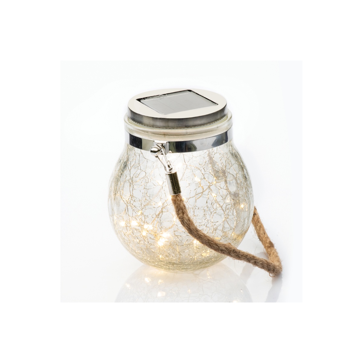 Διακοσμητικό γυάλινο κρακελέ βάζο με ηλιακό panel με ασημί καλώδιο χαλκού και 30 Led.