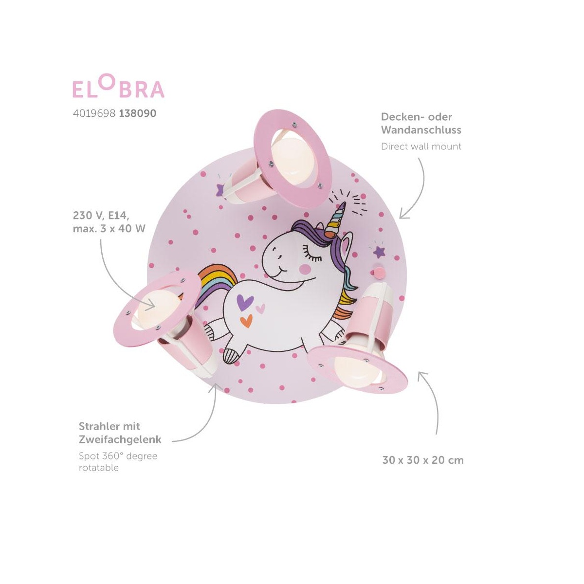 Φωτιστικό μονόφωτο παιδικό αμπαζούρ,ύφασμα με σχέδιο κύκνος σε ροζ απόχρωση E27 Φ40