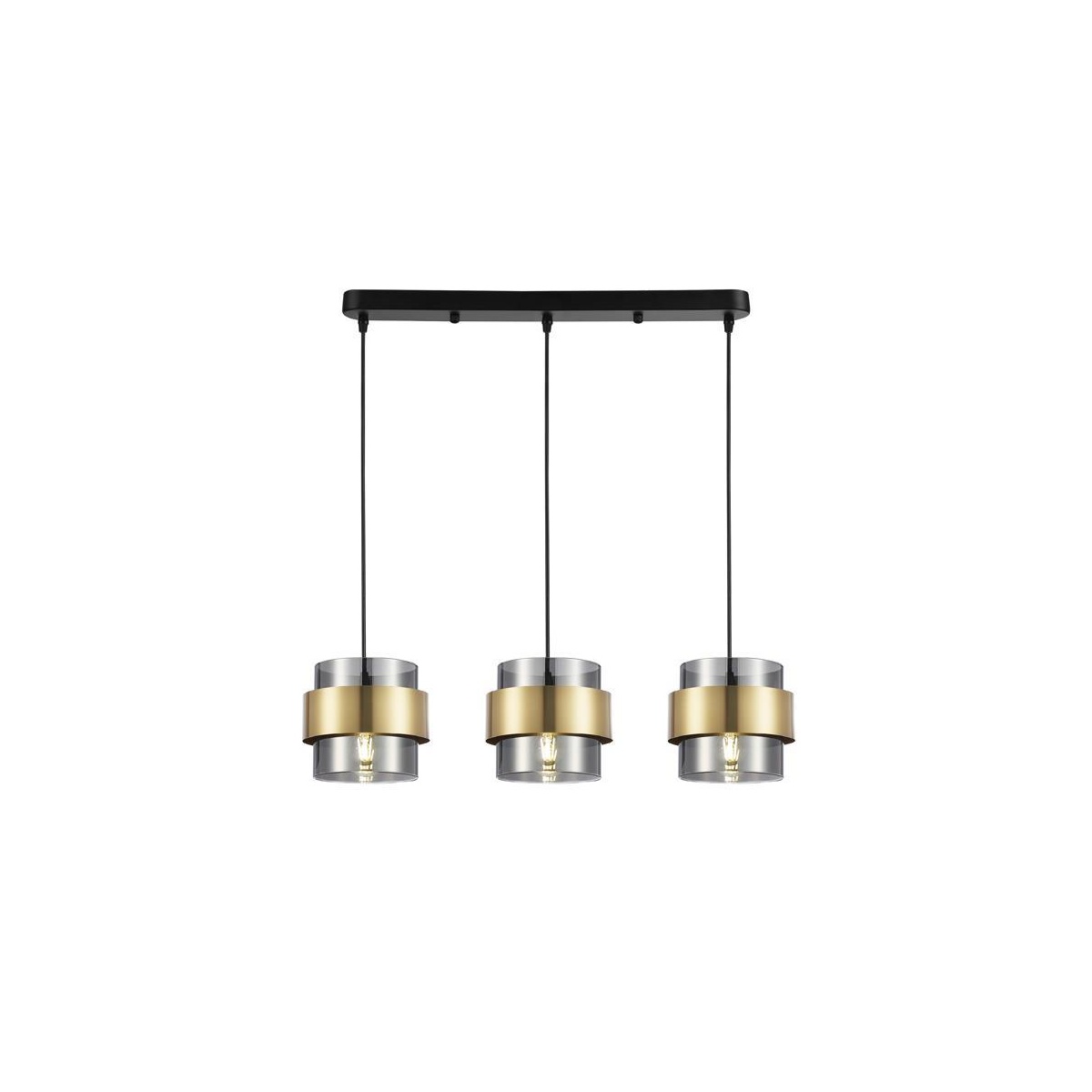 Τρίφωτο κρεμαστό γυάλινο φωτιστικό σε μελί χρώμα, διακοσμημένο με κρύσταλλα.