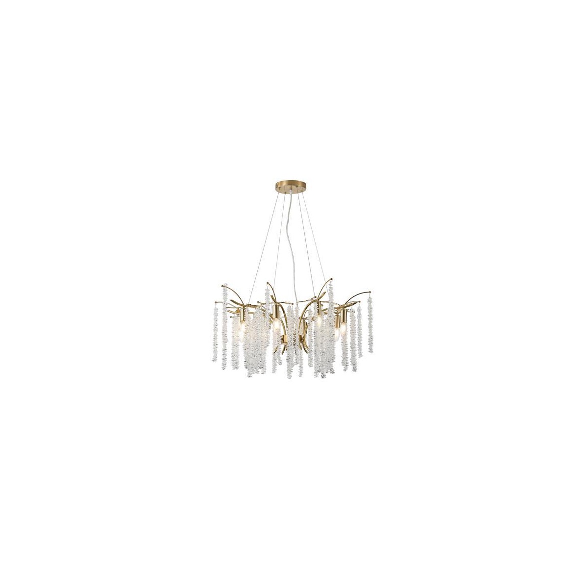 Μεταλλικό τρίφωτο φωτιστικό οροφής σε μαύρο χρώμα και υφασμάτινο αμπαζούρ σε ασπρόμαυρο χρώμα.