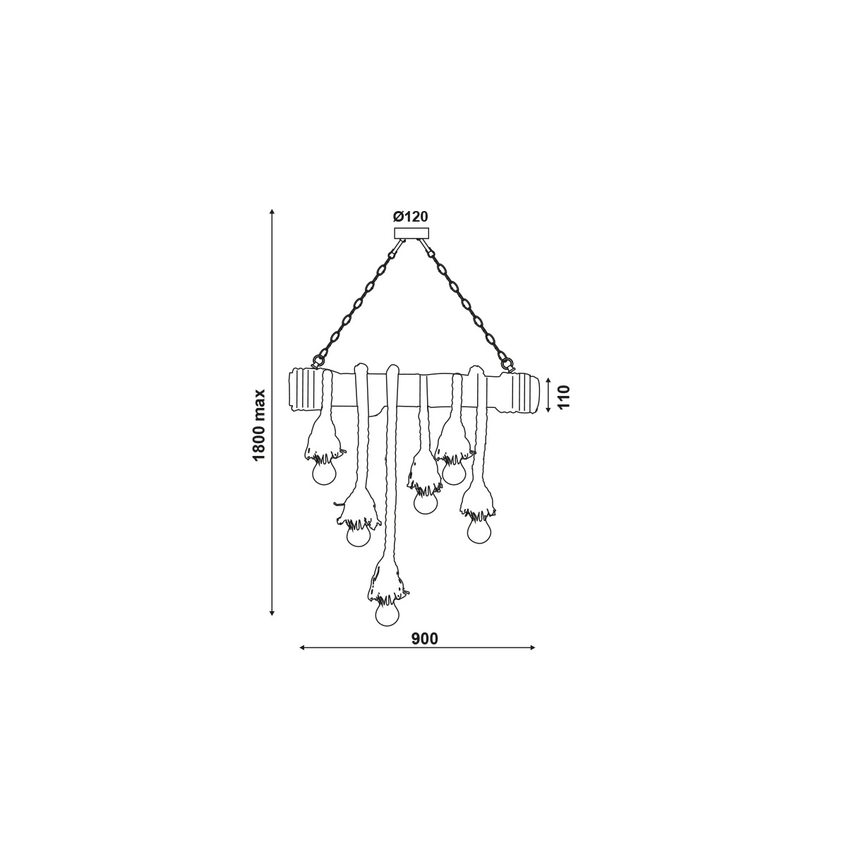 Vintage πολύφωτο φωτιστικό οροφής με μπαμπού και σχοινί.