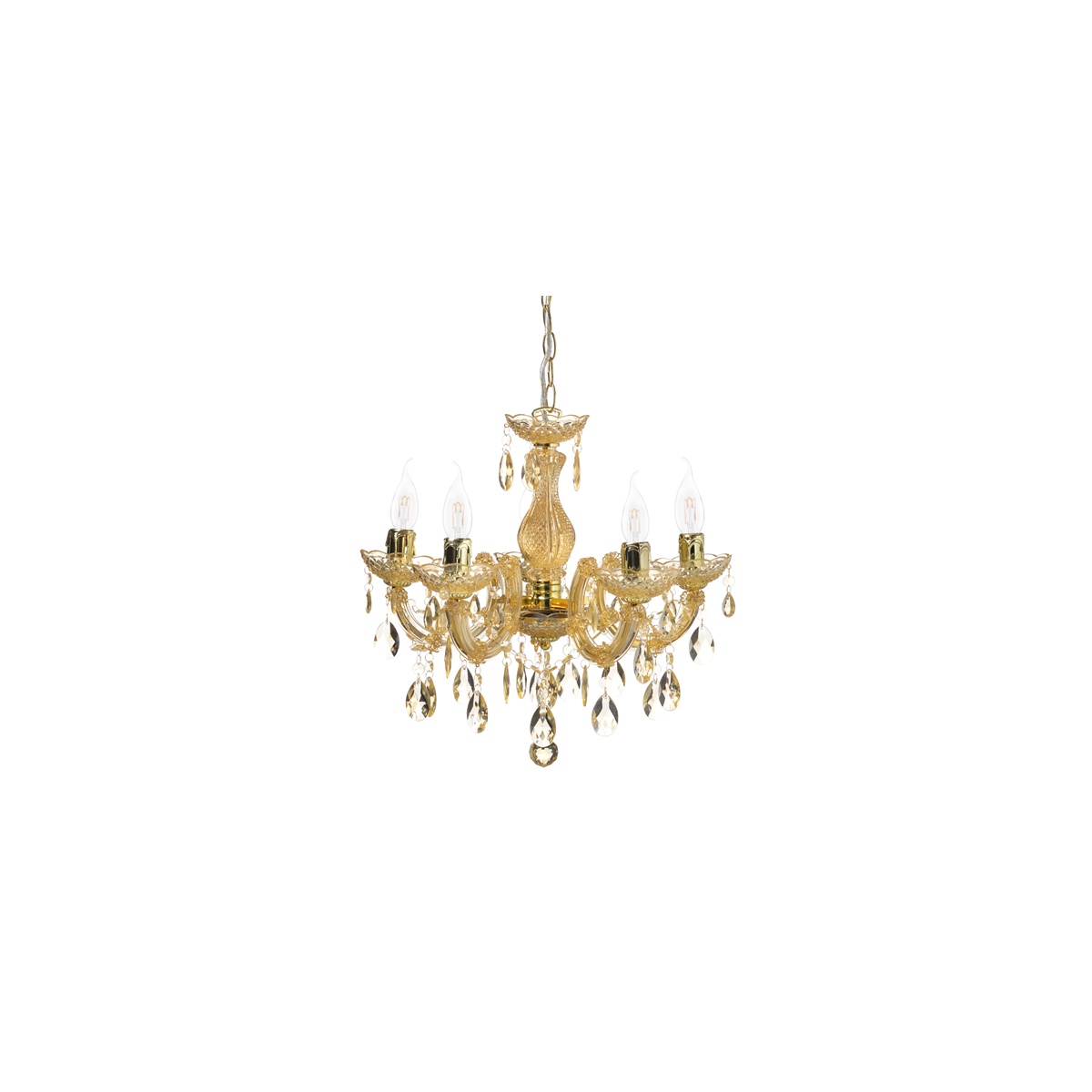 Τρίφωτο μεταλλικό κρεμαστό φωτιστικό σε μπεζ πατίνα χρώμα, διακοσμημένο με κρύσταλλα.