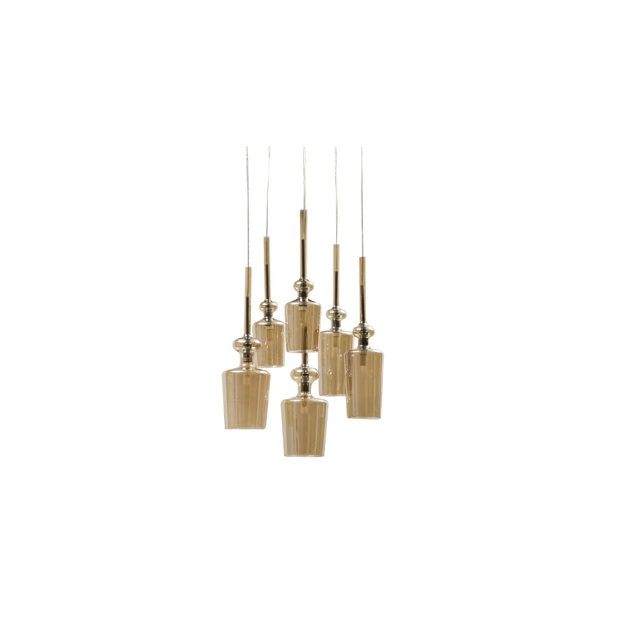 Κρεμαστό εξάφωτο φωτιστικό από ακρυλικό μεγάλης καθαρότητας και διαφάνειας με λεπτομέρειες χρώματος χρώμιο.