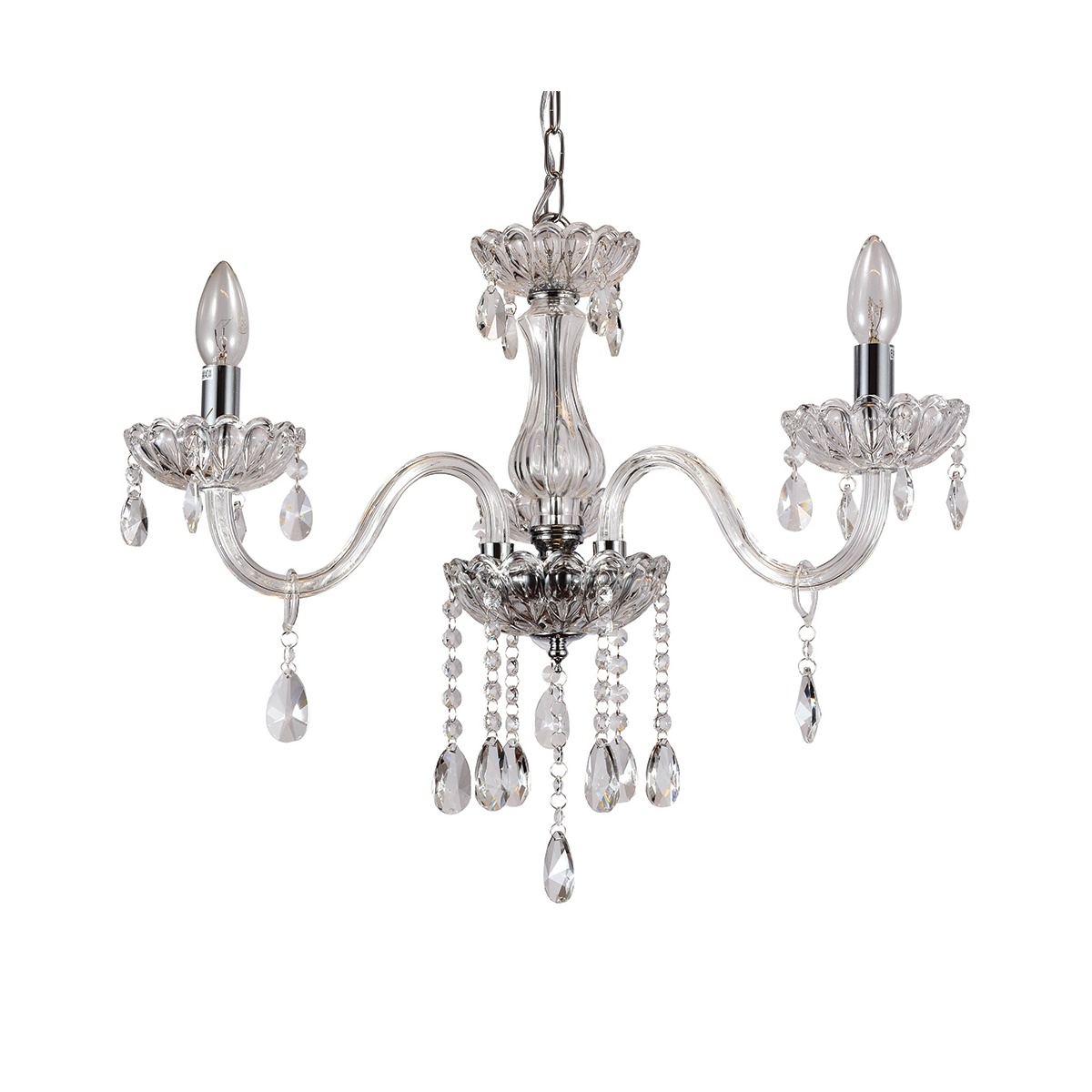 Τρίφωτο μεταλλικό φωτιστικό σε μαύρο χρώμα και διαφανές γυαλί.