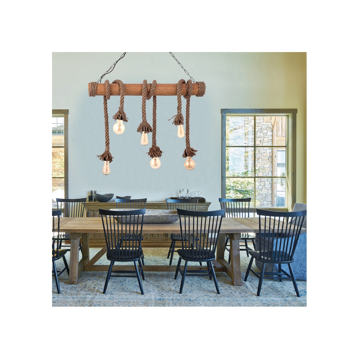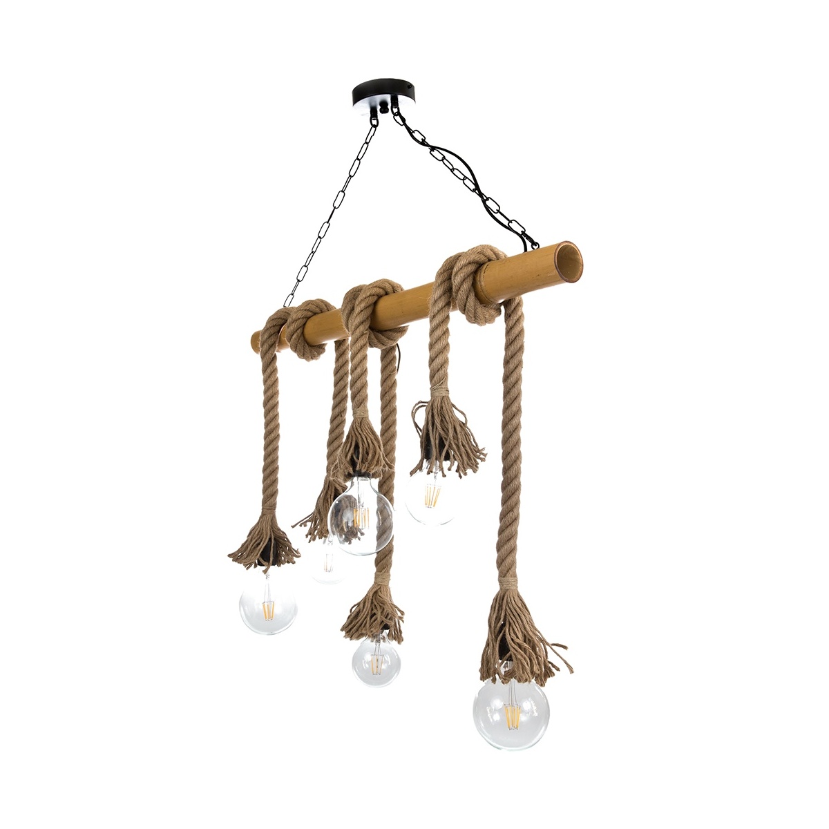 Κρεμαστό τρίφωτο φωτιστικό κατασκευασμένο από πηλό σε καφέ χρώμα.