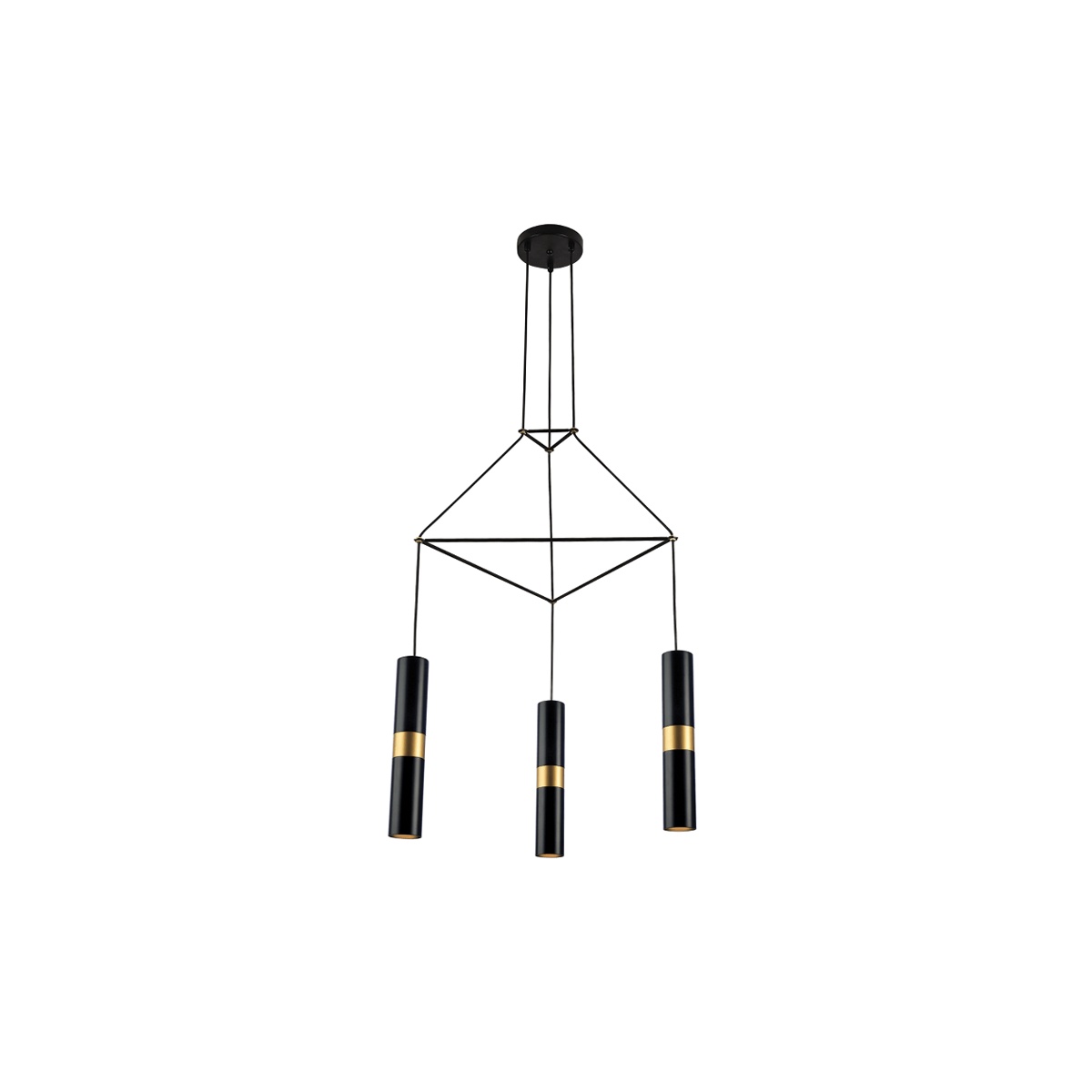 Κρεμαστό πεντάφωτο μεταλλικό φωτιστικό στο χρώμα του χρυσού και υφασμάτινο λευκό αμπαζούρ.