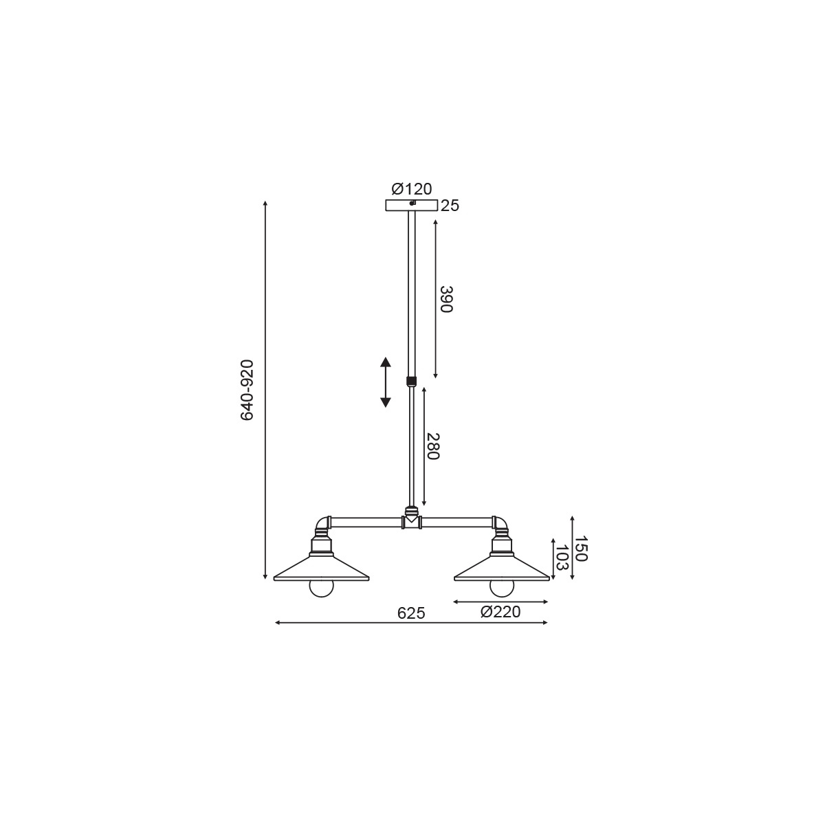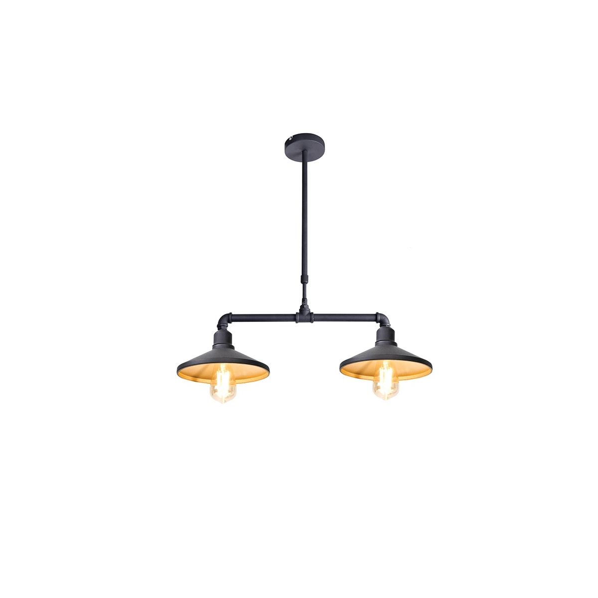 Δίφωτο κρεμαστό μεταλλικό φωτιστικό σε μαύρο χρώμα και χρυσό στο εσωτερικό του καπέλου.